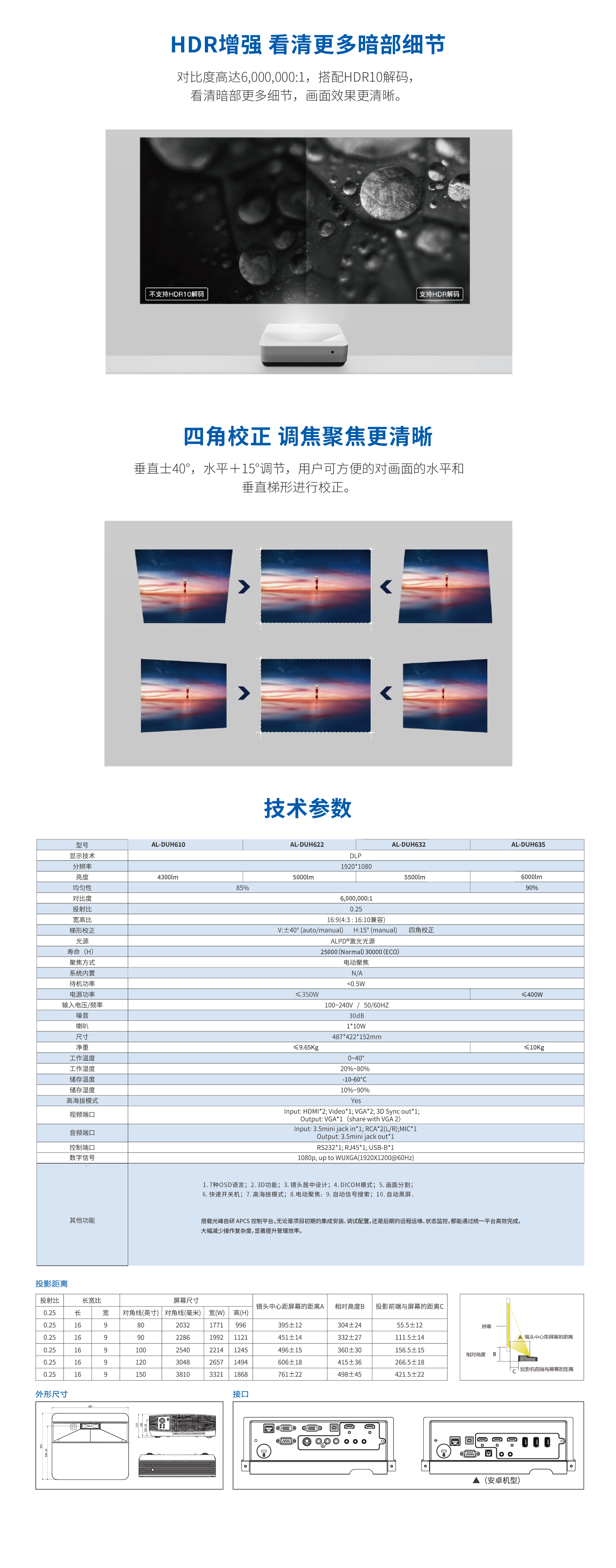2.支持电动镜头聚焦,具备自动梯形矫正功能;